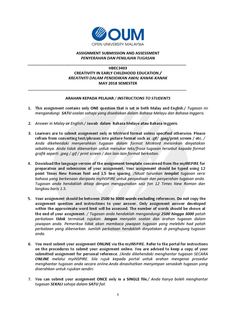 Contoh Assignment Pendidikan Awal Kanak-kanak