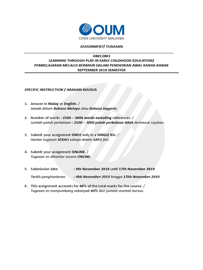 Assignment Pengenalan Pendidikan Awal Kanak Kanak Doc Kod Kursus Bachelor Of Early Childhood Education With Honours Januari 2020 Hbec1103 Pengenalan Course Hero