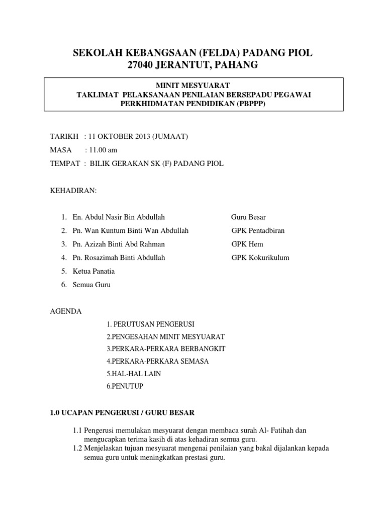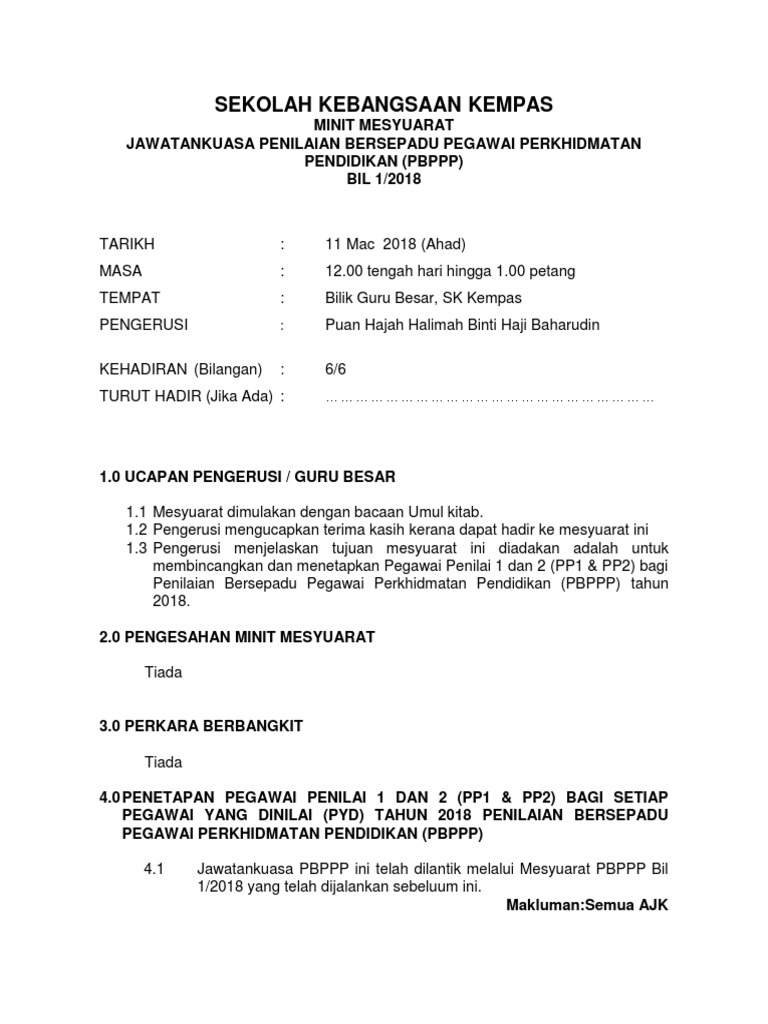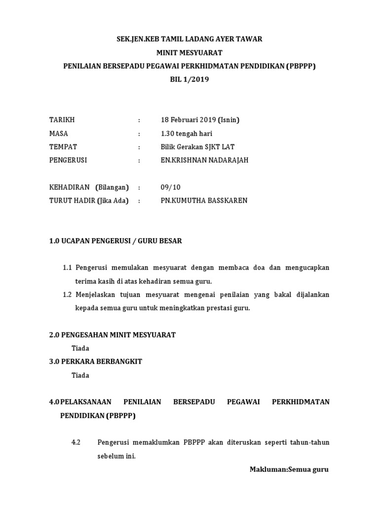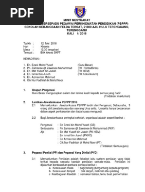 Minit Mesyuarat Pentadbiran 1 Utk Pbppp Pdf