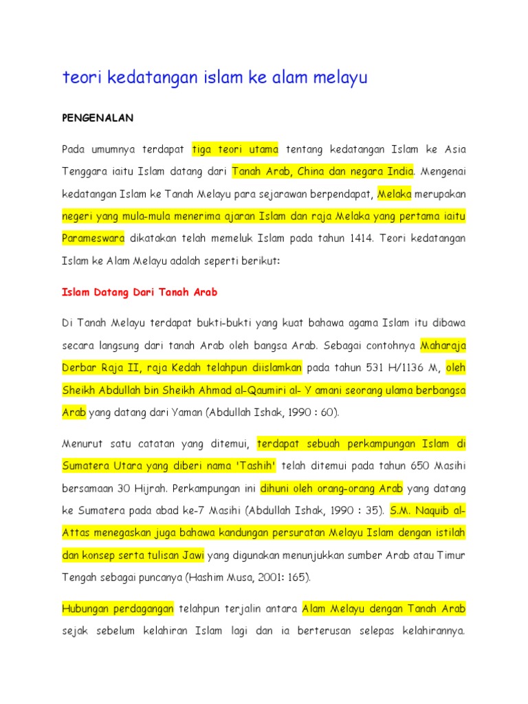 Teori Kedatangan Islam Ke Alam Melayu Januari 2010 Pdf