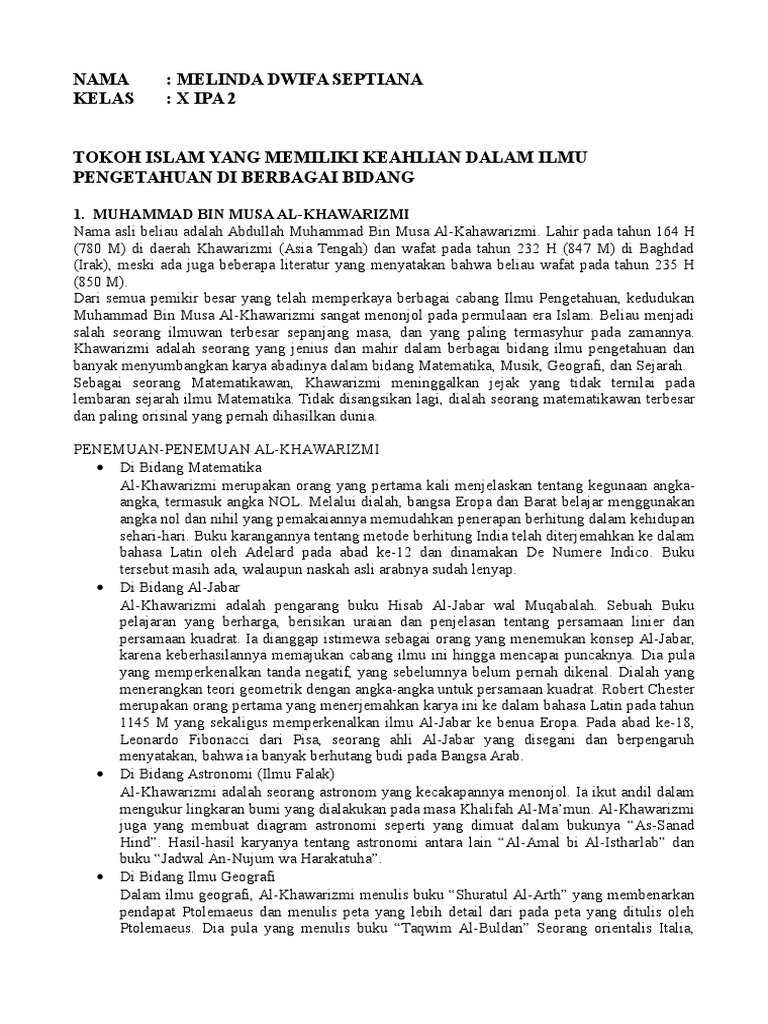 Biografi Tokoh Islam Yang Memiliki Keahlian Dalam Ilmu Pengetahuan