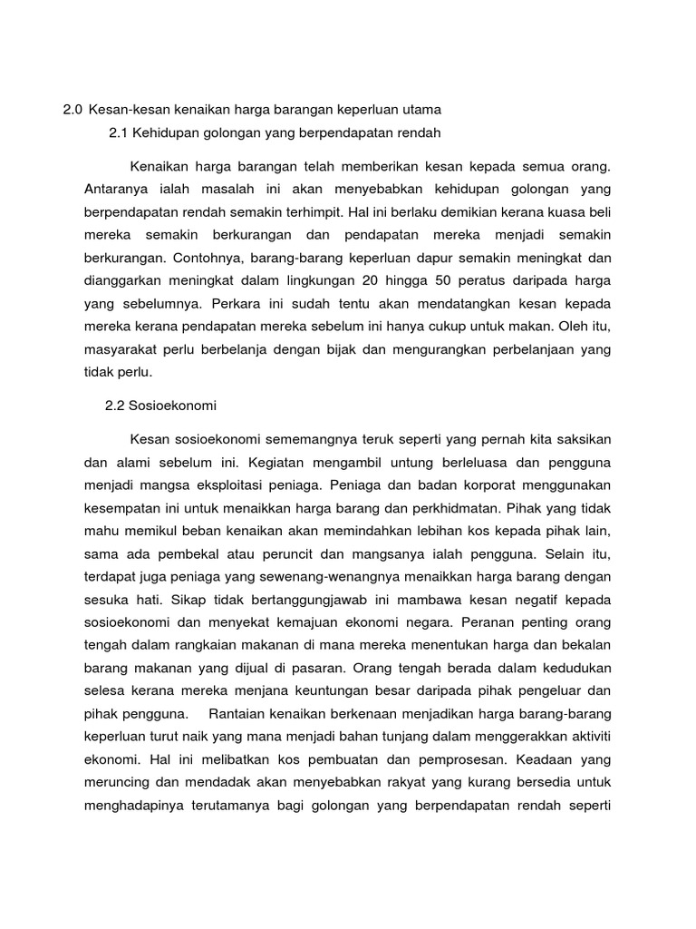 Karangan Punca Dan Kesan Kenaikan Harga Barang