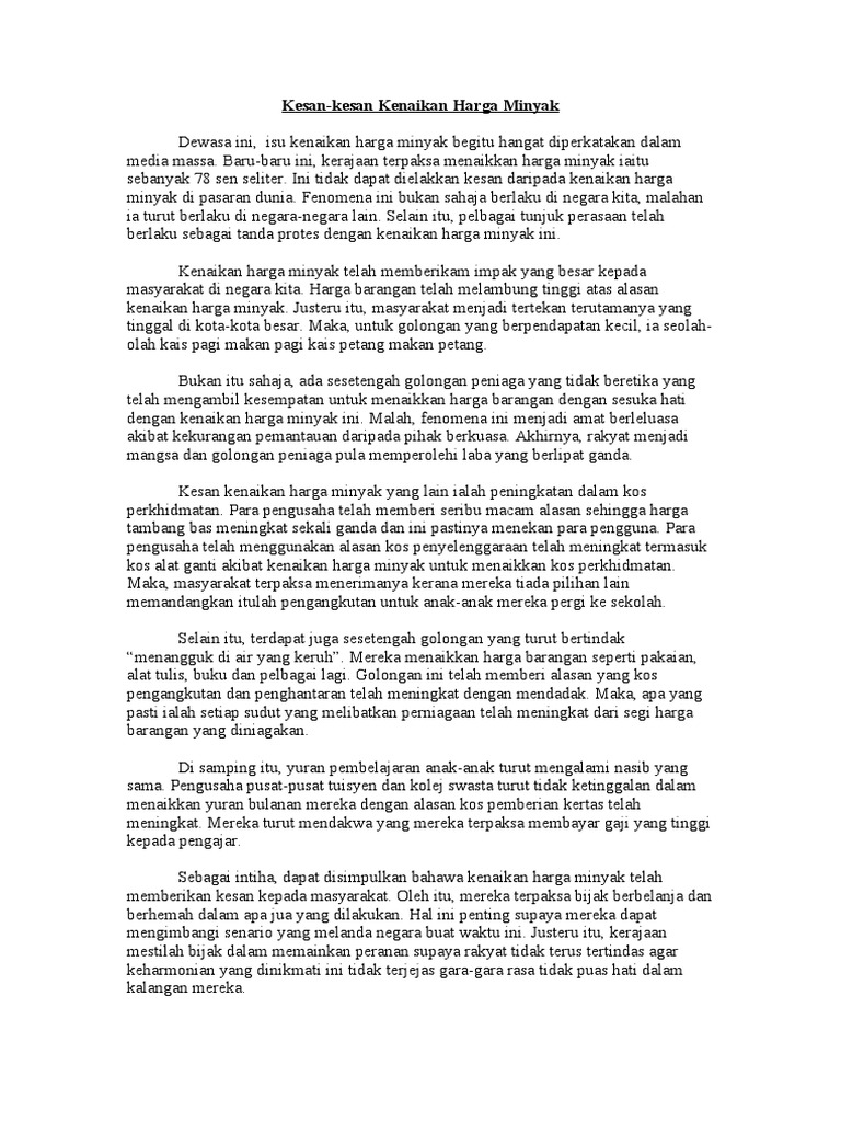 Karangan Tentang Kesan Kenaikan Harga Barang Kepada Pengguna Gallery Baru