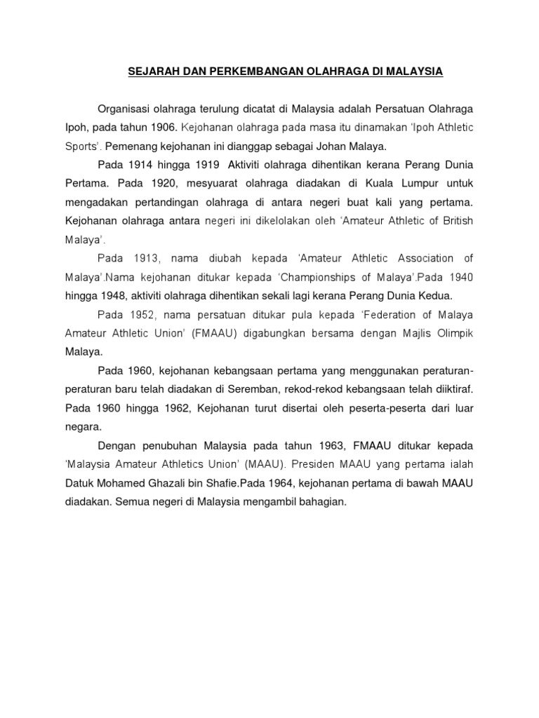 Sejarah Dan Perkembangan Olahraga Di Malaysia