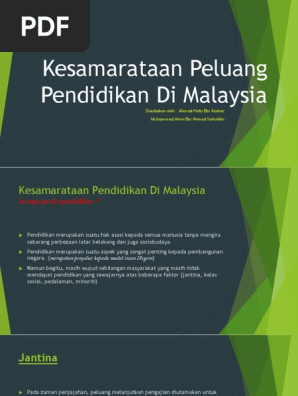Kesamarataan Peluang Pendidikan Di Malaysia Pdf