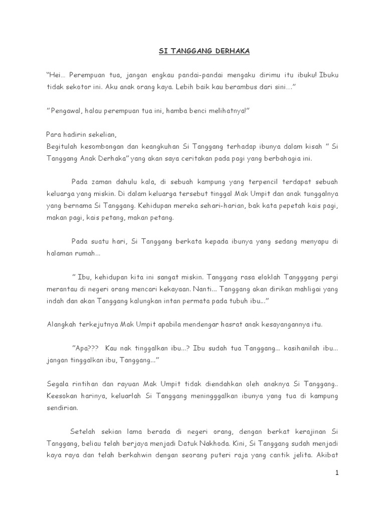 Teks Pertandingan Bercerita Bahasa Melayu Tahap 1