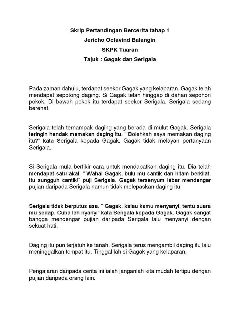 Skrip Cerita Pertandingan Bercerita Bahasa Melayu