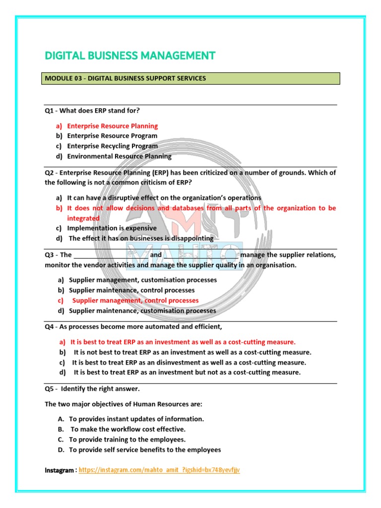 Ecerp Mcq E Commerce Enterprise Resource Planning