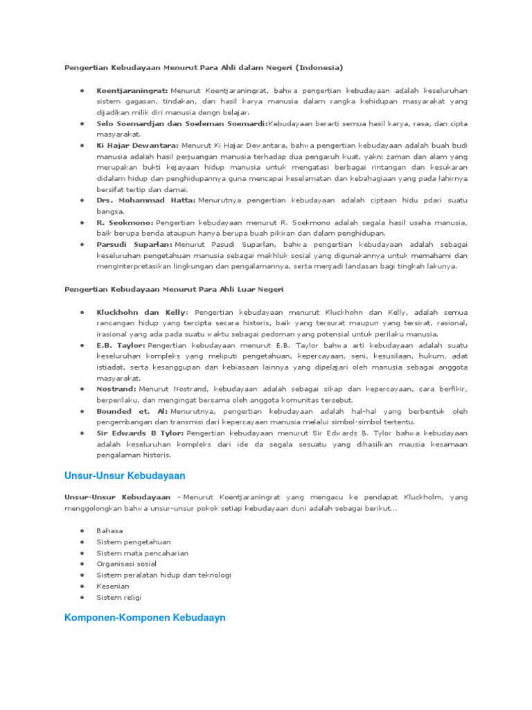 Pengertian Budaya Menurut Para Ahli Dalam Bukunya
