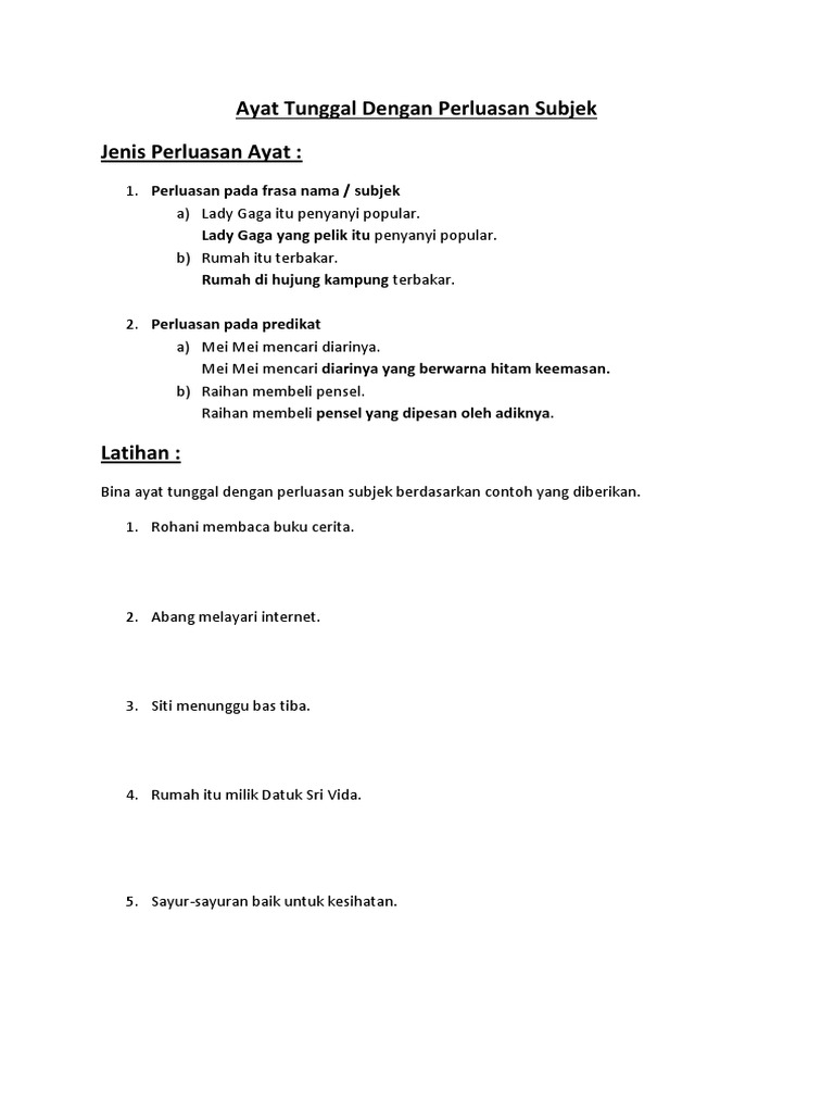 Ayat Tunggal Dengan Perluasan Subjek