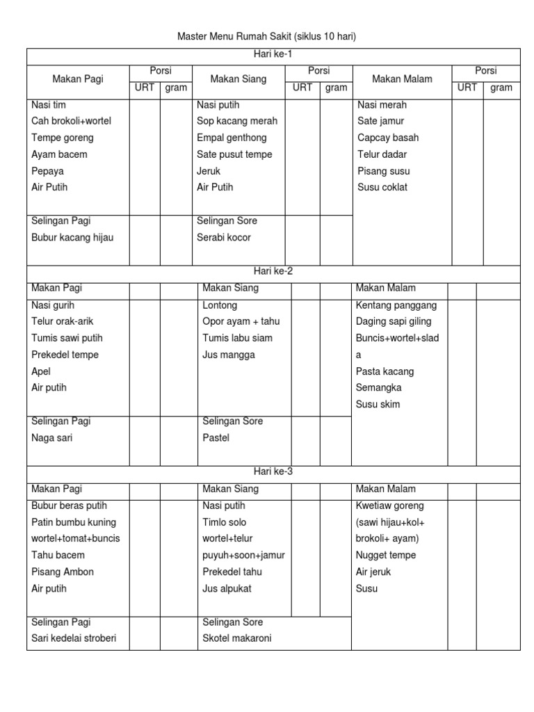 Contoh Menu Dan Resep Bentuk Makanan Standar Rumah Sakit
