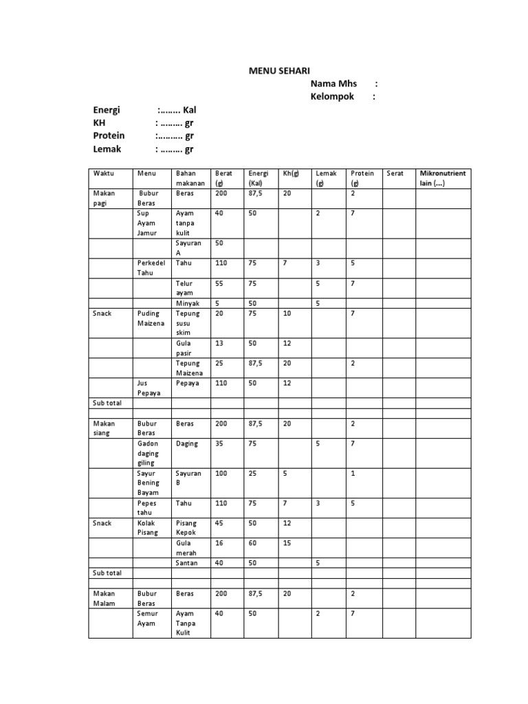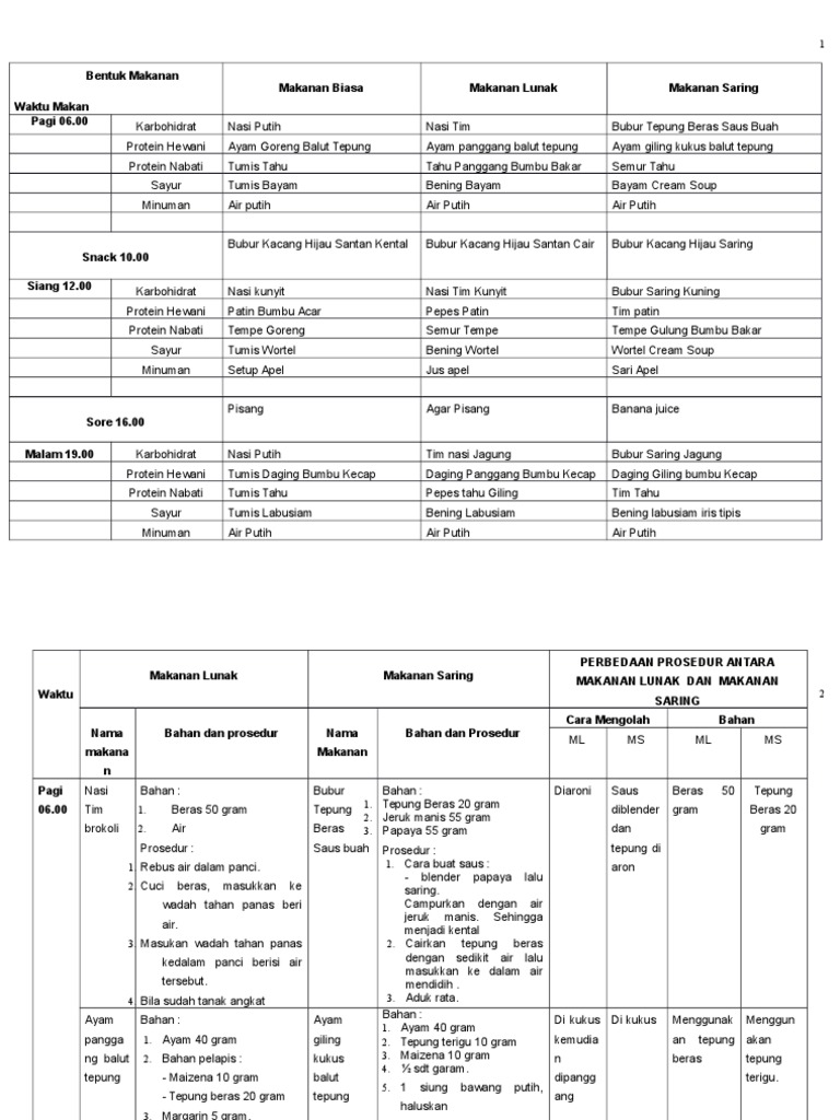 Contoh Menu Dan Resep Bentuk Makanan Standar Rumah Sakit Pdf
