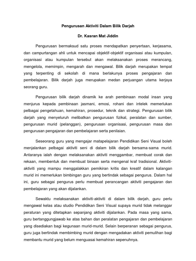 Pengurusan Aktiviti Dalam Dan Luar Bilik Darjah