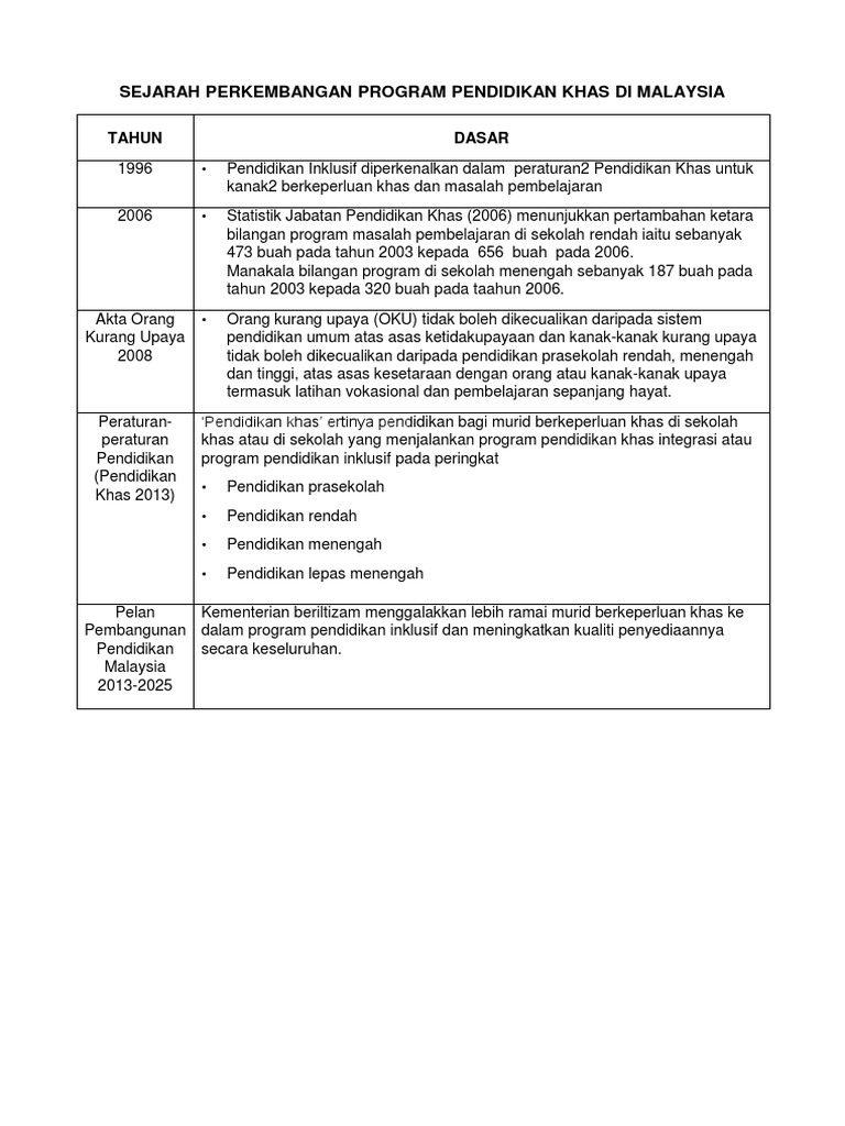 Edited Sejarah Perkembangan Program Pendidikan Inklusif Di Malaysia Pdf