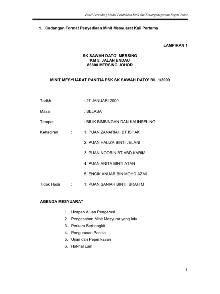 Contoh Minit Mesyuarat Panitia Bm Kali Pertama