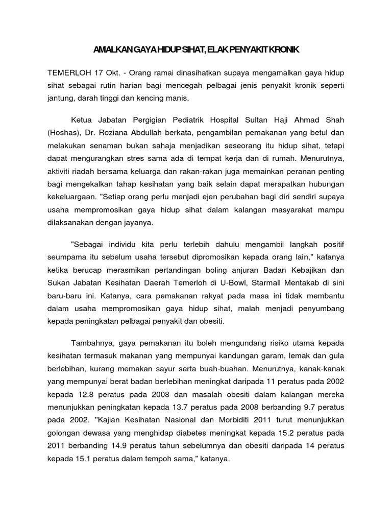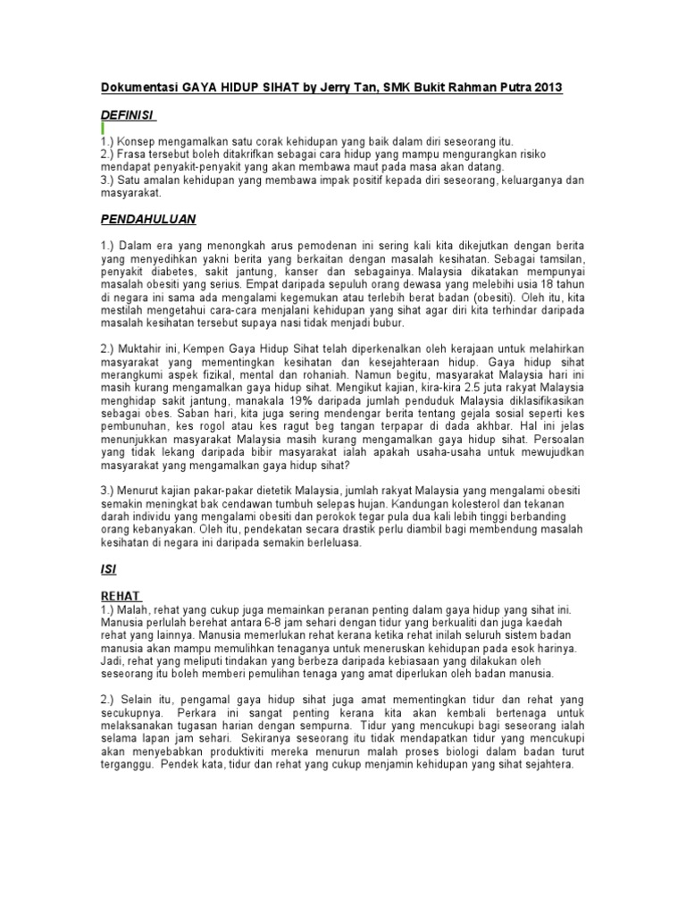 Esei Pendek Gaya Hidup Sihat Dan Penulisan Rfleksi Pdf