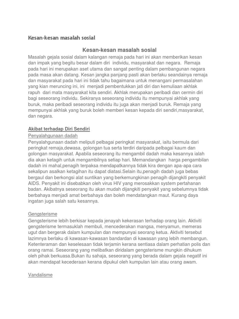 Kesan Masalah Gejala Sosial Dalam Kalangan Remaja