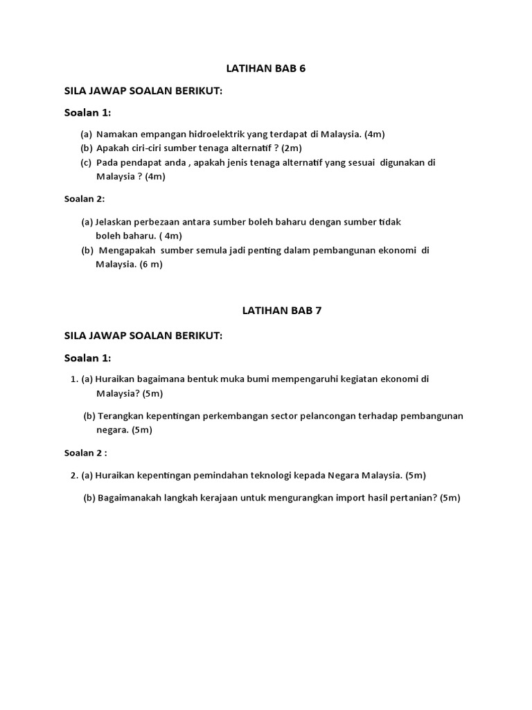 Ejercicio De Latihan Bab 6 Tanah Tinggi