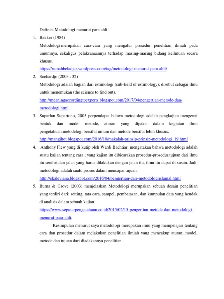 Definisi Metodologi Menurut Para Ahli Pdf