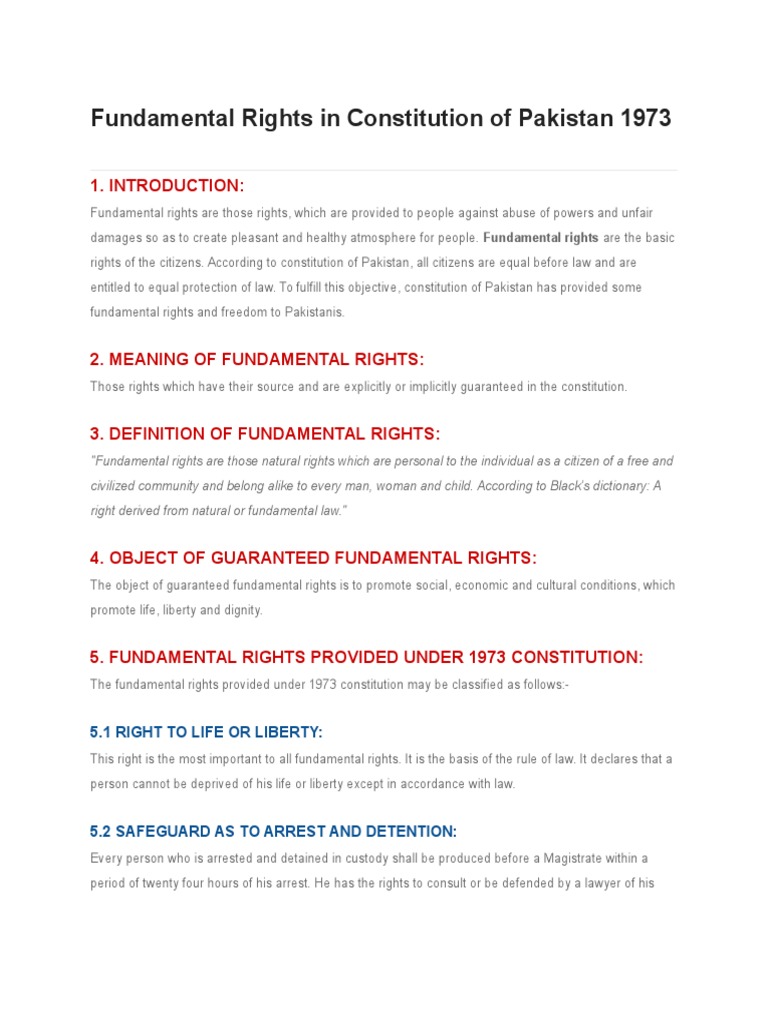 Fundamental Rights In Constitution Of Pakistan 1973 5 1 Right To Life Or Liberty Pdf Natural And Legal Rights Citizenship