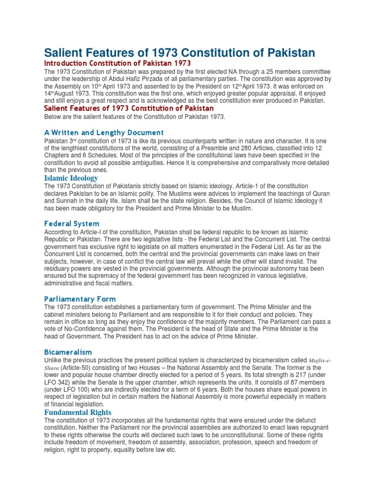 Pdf Salient Features Of Constitution Of Pakistan 1973