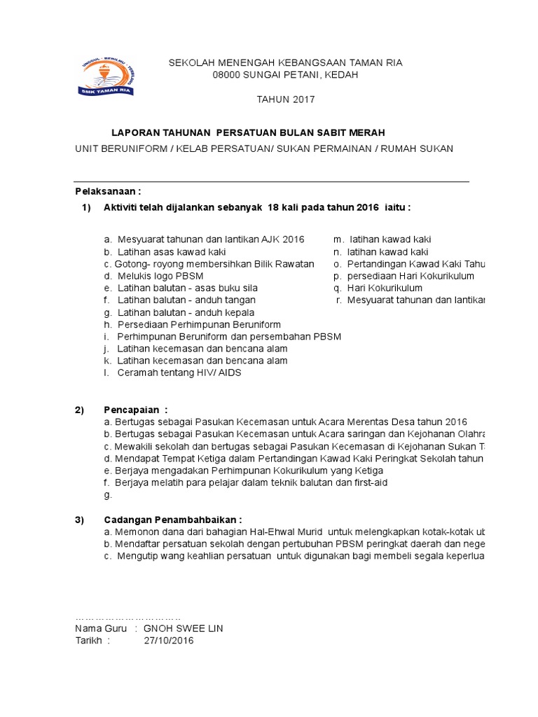 Doc Contoh Penulisan Laporan Tahunan Unit Kokurikulum Fony Nuli Academia Edu