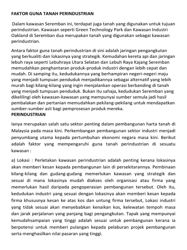 Faktor Mempengaruhi Guna Tanah Perindustrian