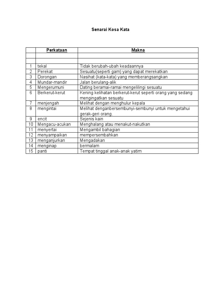 Senarai Kosa Kata Dan Maksudnya