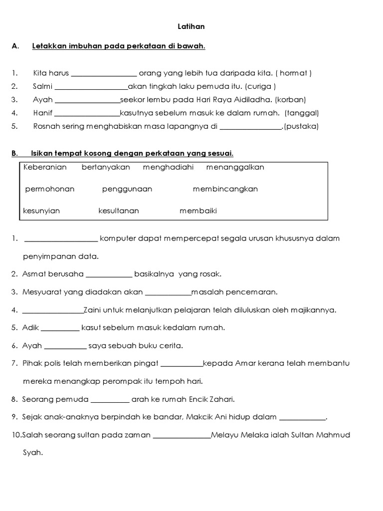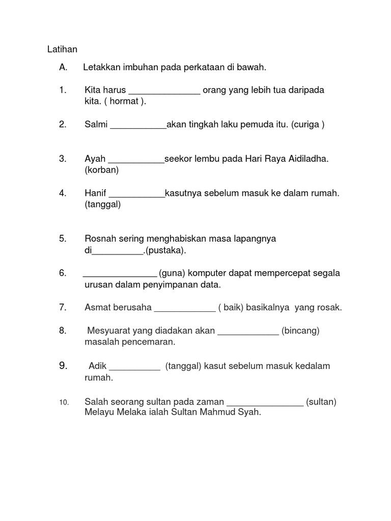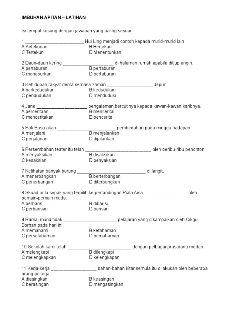 Latihan Imbuhan Awalan Akhiran Dan Apitan 4