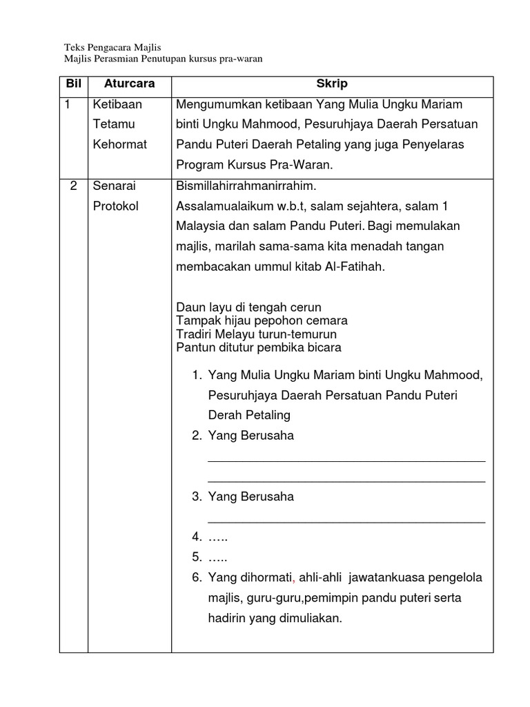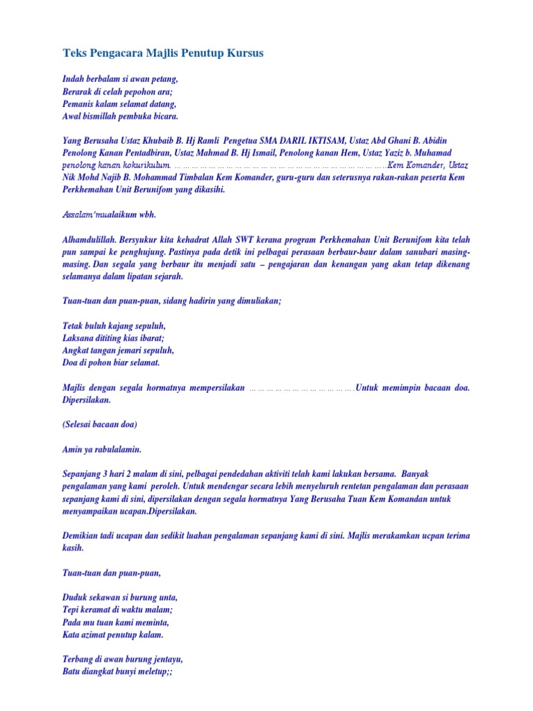 Teks Pengacara Majlis Penutup Kursus Pdf
